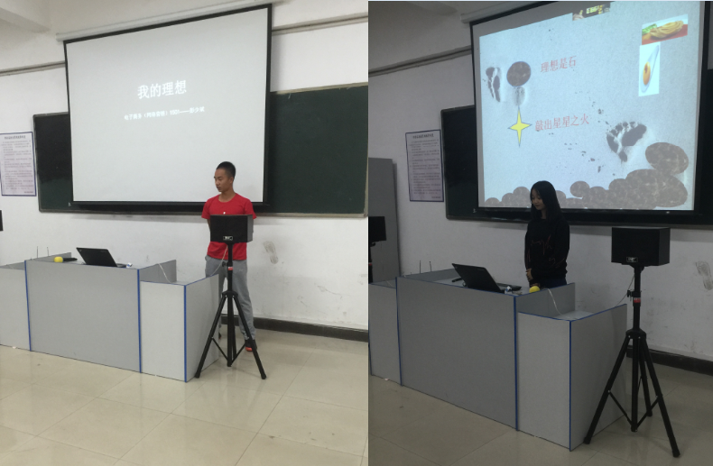 比賽伊始,輔導員何倩老師精彩的演講為此次大賽拉開序幕。參賽選手分別上臺講解自己的作品,圍繞“我的理想”、“我的家鄉”兩個主題,同學們精彩的演講內容、激昂的聲調、高超的表現技巧、制作精美的PPT博得觀眾陣陣喝彩,時而莊重典雅、時而詼諧幽默,把整個比賽氛圍不斷推向高潮。
