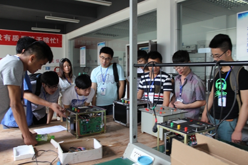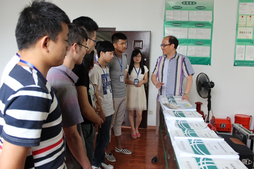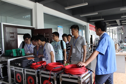木森電氣項目組的學生在公司生產車間了解產品情況