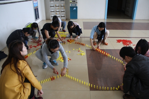 此次活動與前三屆比賽相比,任務難度有所加大,個別任務點需耗時40分鐘才能完成,比如個性點—多米諾骨牌,項目道具包含5萬塊骨牌,每隊領取相應的多米諾骨牌,按照參考圖型,由紅色、黃色、紅色三個小方塊擺放成多米諾圖形,并能成功形成多米諾效應。此項任務考驗了團隊成員之間的協調能力以及團隊的凝聚力。